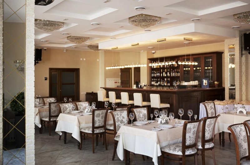 На территории функционирует ресторан, где представлен широкий ассортимент изысканных блюд на любой вкус.